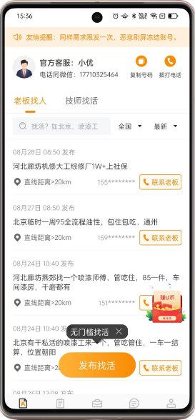 ※ 为修理厂提供招聘、临时用人、车间代管服务
